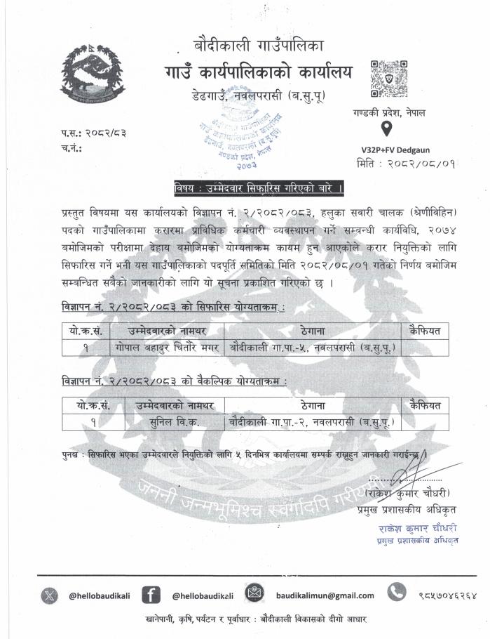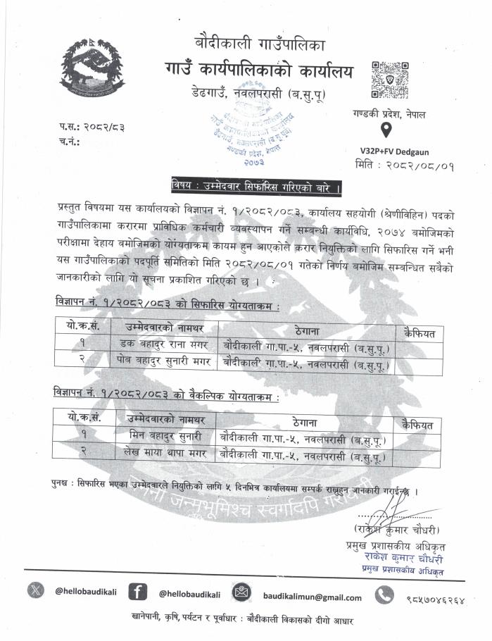 उम्मेदवार सिफारिस गरिएको बारे सूचना ।