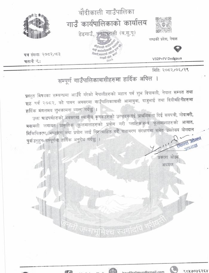 बौदीकाली गाउँपालिकाको आ.व. २०८२/०८३ को लागि नीति तथा कार्यक्रम र बजेट तर्जुमा सम्बन्धी सुझाव संकलन सम्बन्धमा ।